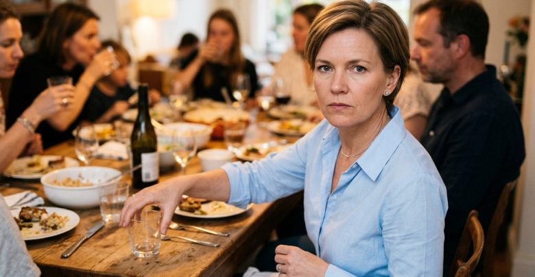 Prie stalo buvo tylu. Tie du, kurie juokėsi, žiūrėjo į staltiesę. Dukterėčia paėmė telefoną. Vyras pagaliau pakėlė galvą ir pažvelgė į mane — pirmą kartą per visą vakarą.